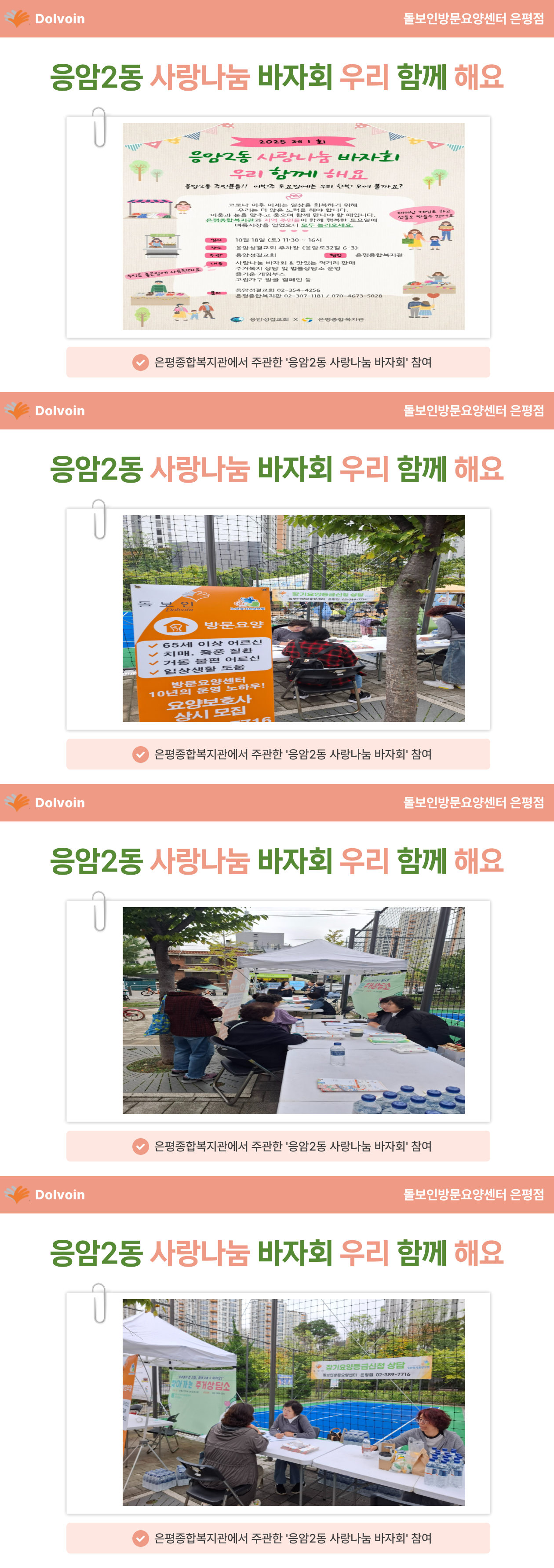 은평종합복지관에서 주관하는 '응암2동 사랑나눔 바자회'에 돌보인 은평점이 참여하여 부스를 운영하였습니다.