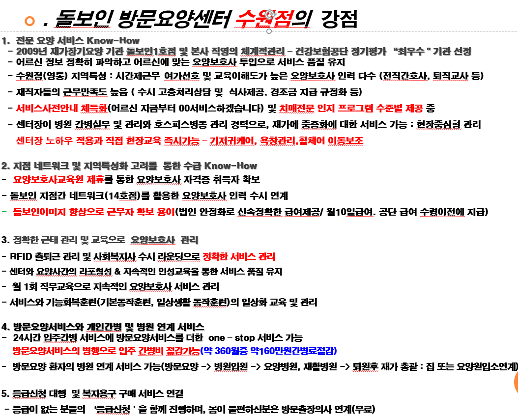 [ 돌보인수원점 ] 특화 및 강점